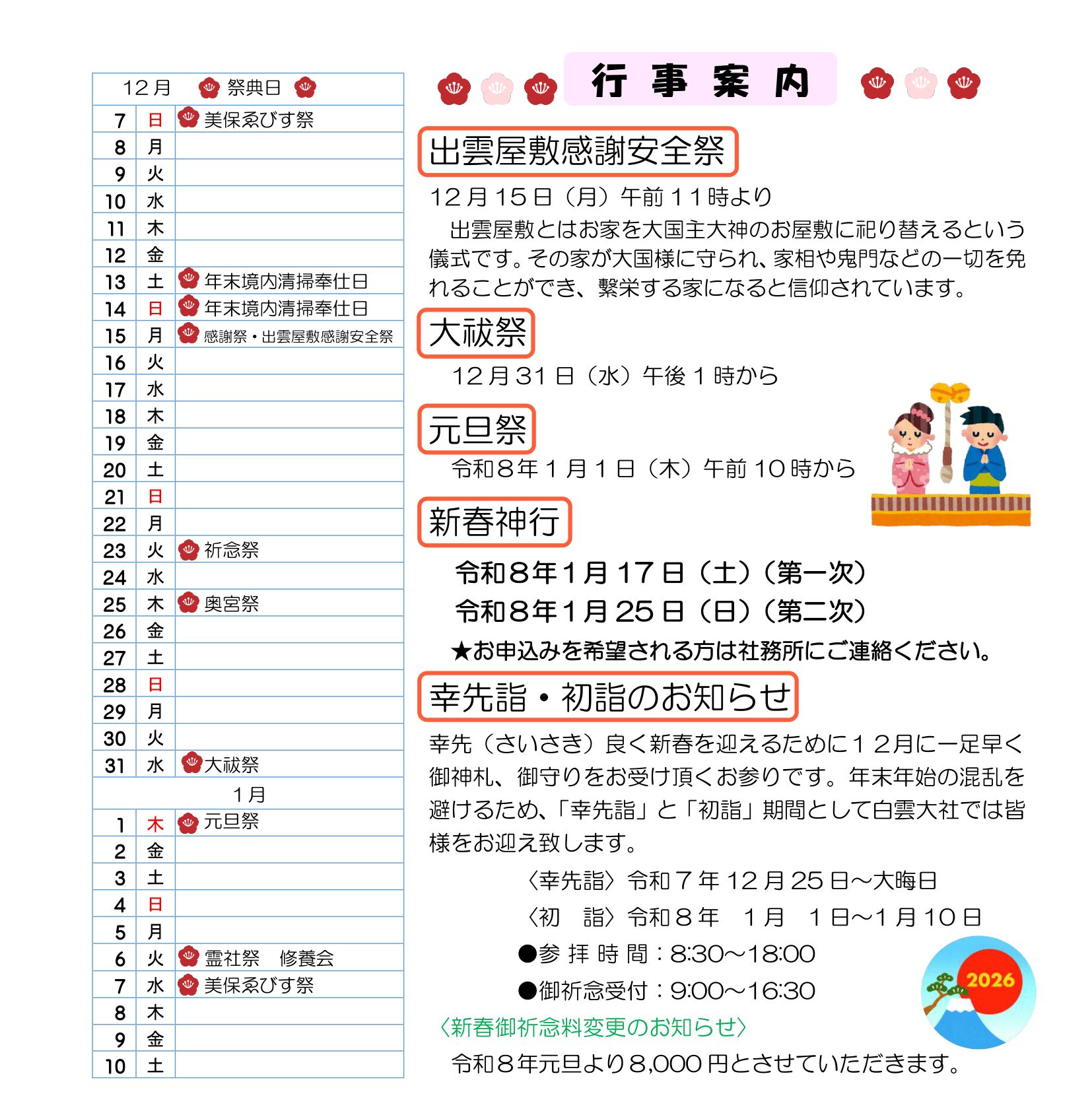 令和7年12月・令和8年1月行事予定